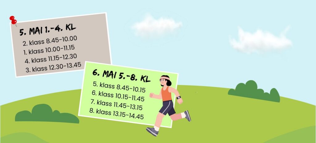 Kevadine spordipäev toimub Viimsi Koolis 5.-6. mai Viimsi jalgpalli- ja kergejõustikuhallis. 5. mai 1.-4. klassid Tervitus algusega kell 8.45, tegevused 9.00-14.00. AJAKAVA8.45-10.00 2. klassid, söömine 10.30-11.0010.00-11.15 1. klassid, söömine 11.45-12.1511.15-12.30 4. klassid, söömine 10.15-10.4512.30-13.45 3. klassid, söömine 11.30-12.00 6. mai 5.-8. klassid Tervitus algusega kell 8.45, tegevused 9.00-14.45. AJAKAVA8.45-10.15 5. klassid, söömine 10.45-11.1510.15-11.45 6. klassid, […]