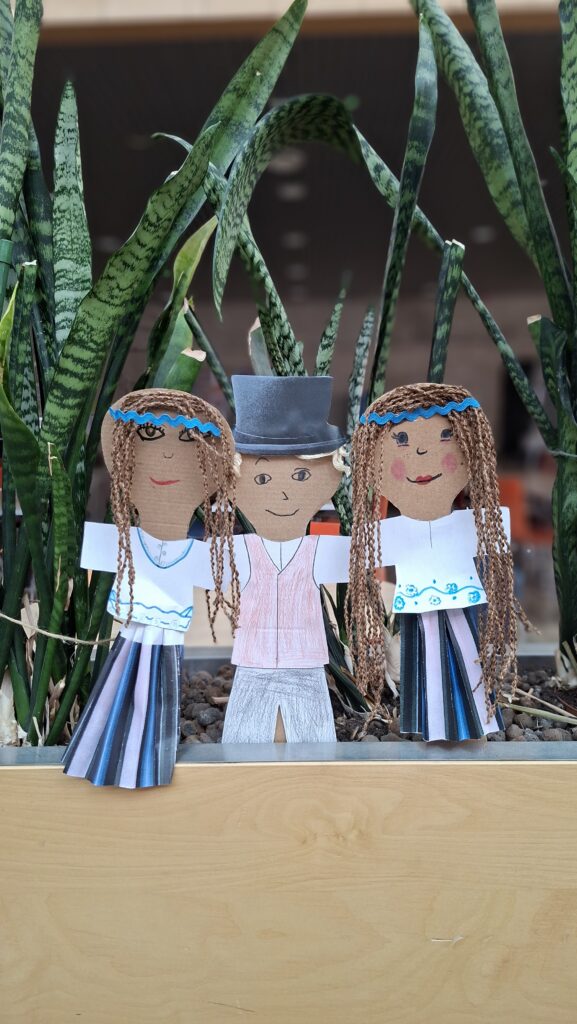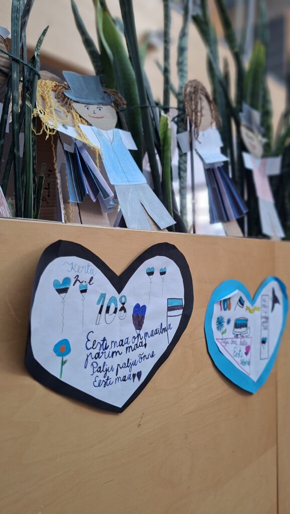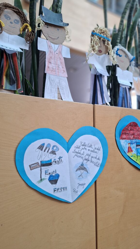 Eesti sünnipäeva puhul sai kauni pidurüü ka meie Viimsi Kool. Algkooli õpilased meisterdasid Jõelähtme rõivastes nukud ning kirjutasid häid soove Eestile, mis on kaunistamas kooli aatriumi.