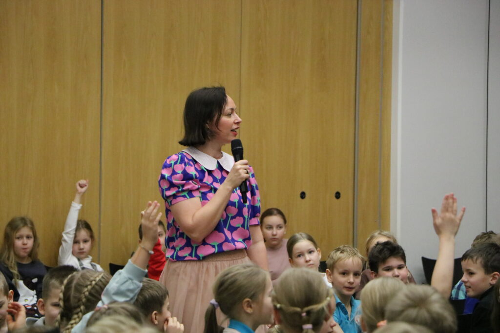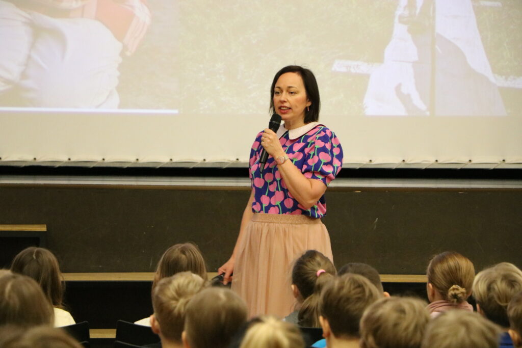 Õpilastel oli võimalus esitada küsimusi, alates sellest, kas kirjutamine on raske töö, mitu raamatut aastas ilmub, kas on raske olla korraga ema, kirjanik, illustraator ja kodu hoidja kuni selleni välja, mis on su tütarde nimed.