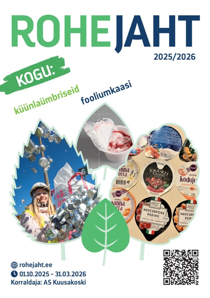 Rohejaht tuleb taas ning sel korral ootame koguma lisaks küünlaümbristele ka alumiiniumfooliumist topsikaasi. Eelmisel hooajal osales üle-eestilises liikumises üle 15 400 noore, kes kogusid ja suunasid taaskasutusse rohkem kui 1,5 miljonit küünlaümbrist. Anna oma panus, et sel aastal tulemusi ületada!